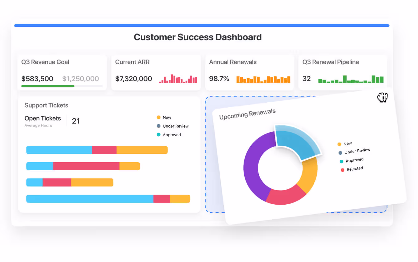 Bring all customer information together in one place to manage requests and monitor onboarding effectively. Plan outreach proactively, capture feedback, and track satisfaction levels while your team delivers exceptional service, supported by clear, customisable dashboards and performance reports.