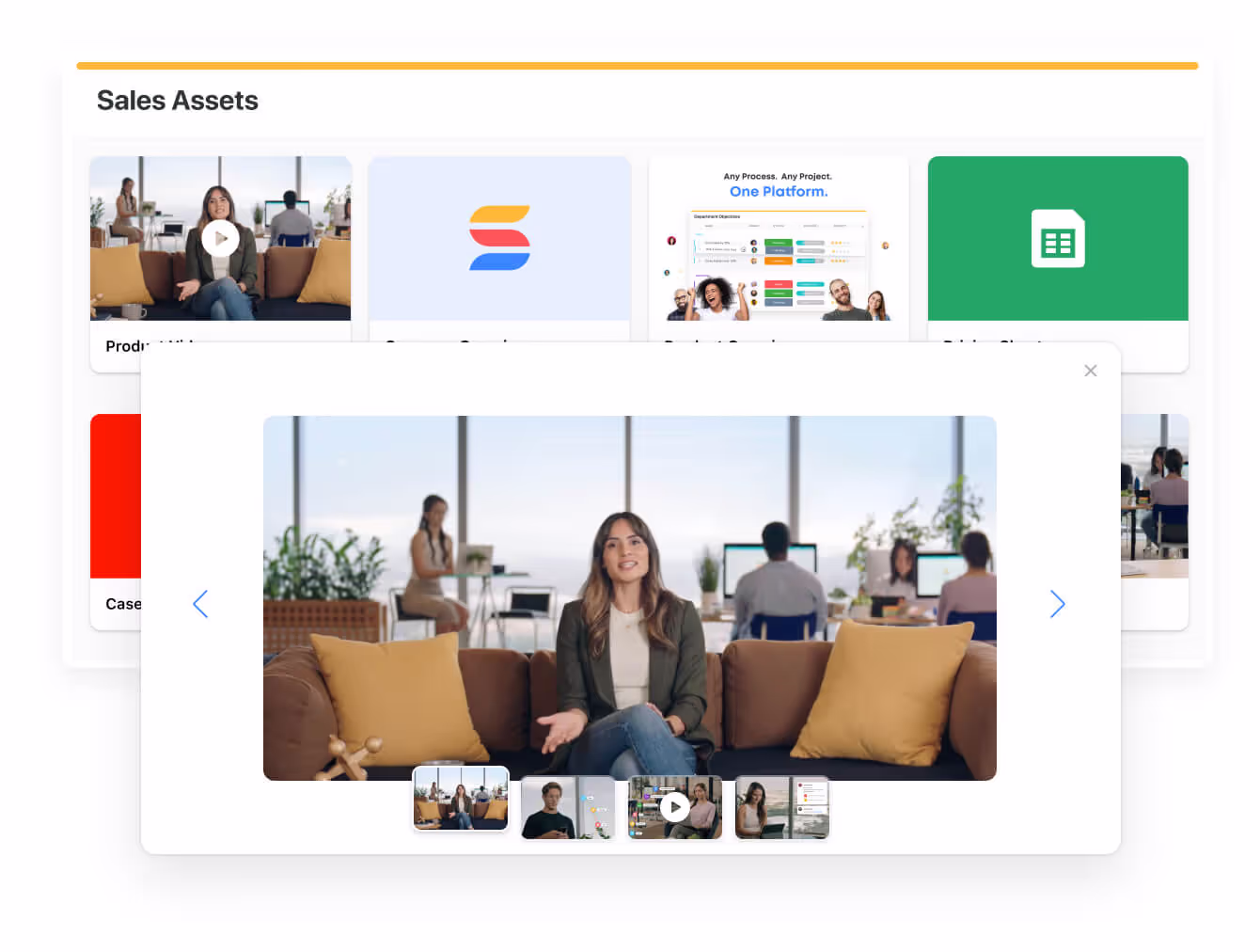 Never wonder which slide deck or document to use again. Easily organise and track all your sales materials in one place, keeping your team aligned and ready to present with confidence.
