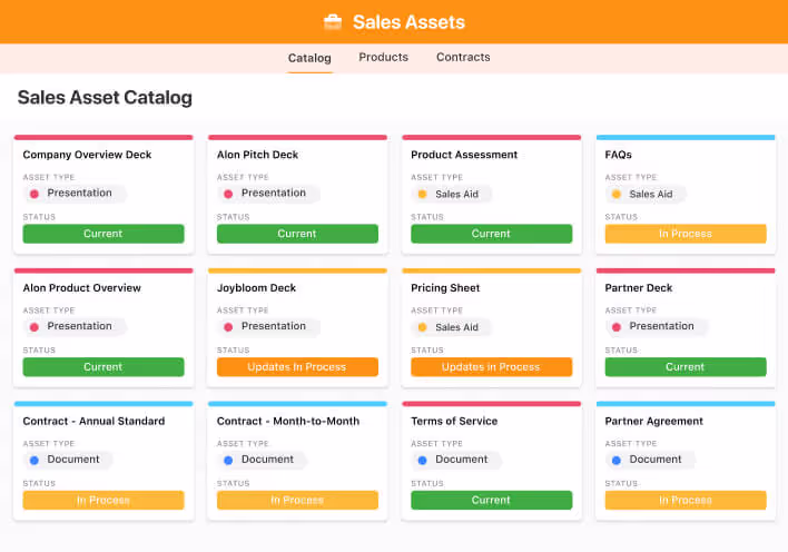 Keep all sales materials in one easy-to-access place. Provide your team with up-to-date proposals, case studies, pricing details, product decks and promotional assets so they can engage prospects effectively and close deals with confidence.