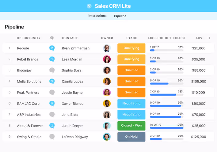 View your entire sales pipeline in real time and generate accurate forecasts to guide smarter decisions. Focus your team’s efforts where they count most—winning new business.